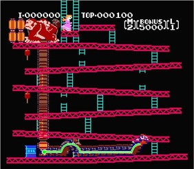 In Donkey Kong, all you had to do was have Mario scale the steel beam levels and climb the ladders until you reached the top and saved the lady. Sounds easy, but it wasn't. Donkey Kong was tossing down barrels onto Mario's poor head as you had to make Mario jump and avoid the barrels. The higher you went, the harder it was to jump over the barrels. You sat on the edge of your seat, frantically hitting the button with your sore thumb, trying to desperately time Mario's jumps.